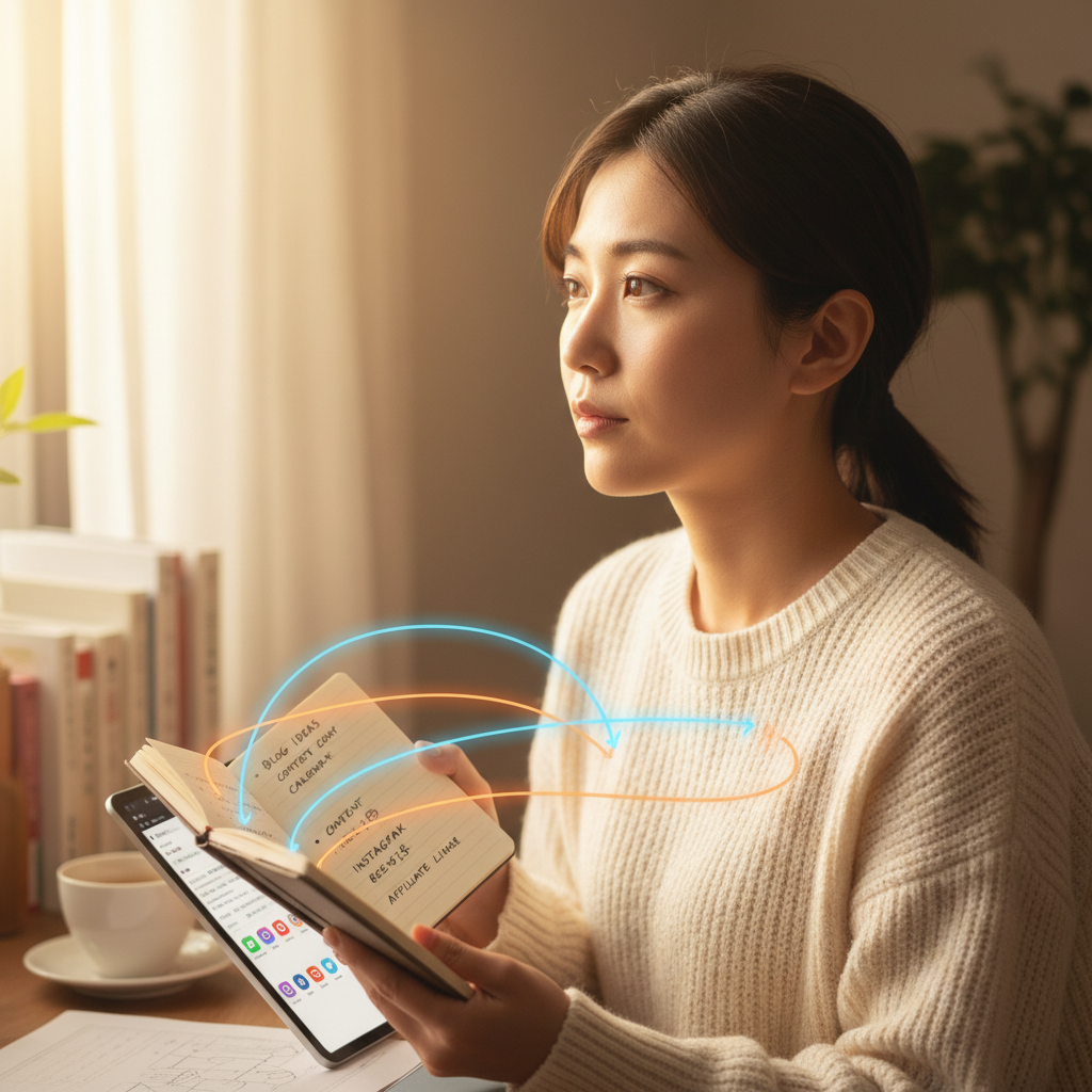 ブログは「資産型」、SNSは「フロー型」。ブログは半年〜1年かけて記事を蓄積し、検索流入から安定収入を得る。SNSは即効性があるが、投稿を止めると収入も止まる。